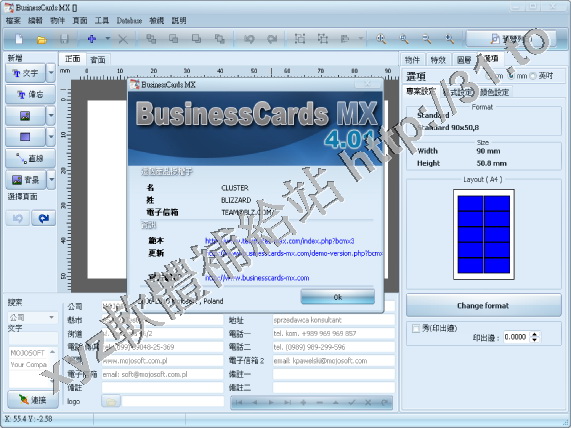 Mojosoft Software BusinessCards MX v4.01 繁體中文正式版(商業名片製作軟體)