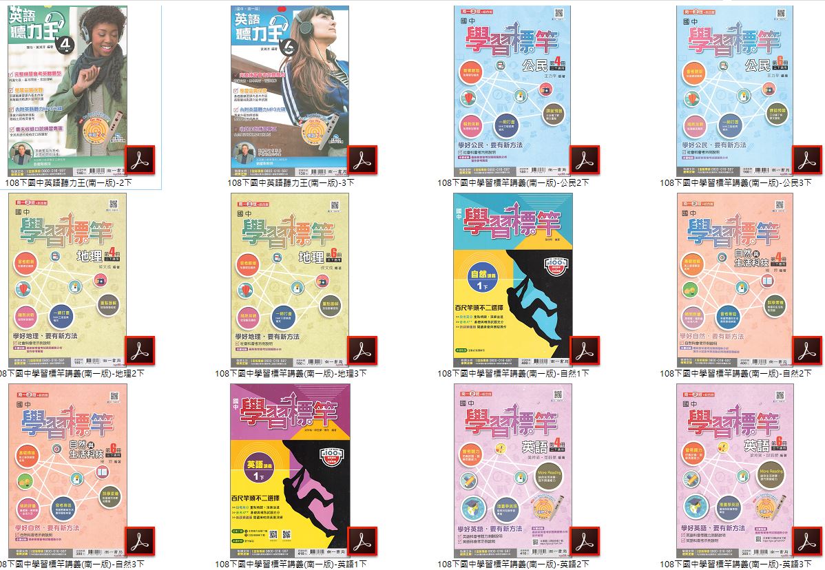108學年下學期 國中學習標竿講義+英語聽力王 南一版 1-3年級(含2-3年級英語聽力測驗MP3)全科目 講義光碟DVD版