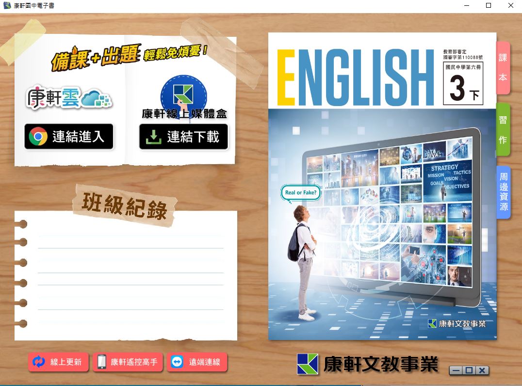 111學年下學期 國中 康軒版 英語電子書 3年級(含課本、習作含解答、教學資源)教學光碟