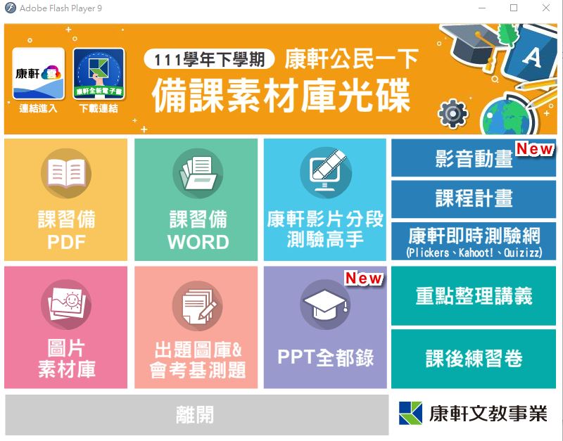 DAC8247--111學年下學期 國中 康軒版 公民電子書 3年級(含課本、習作含解答、教學資源)教學光碟