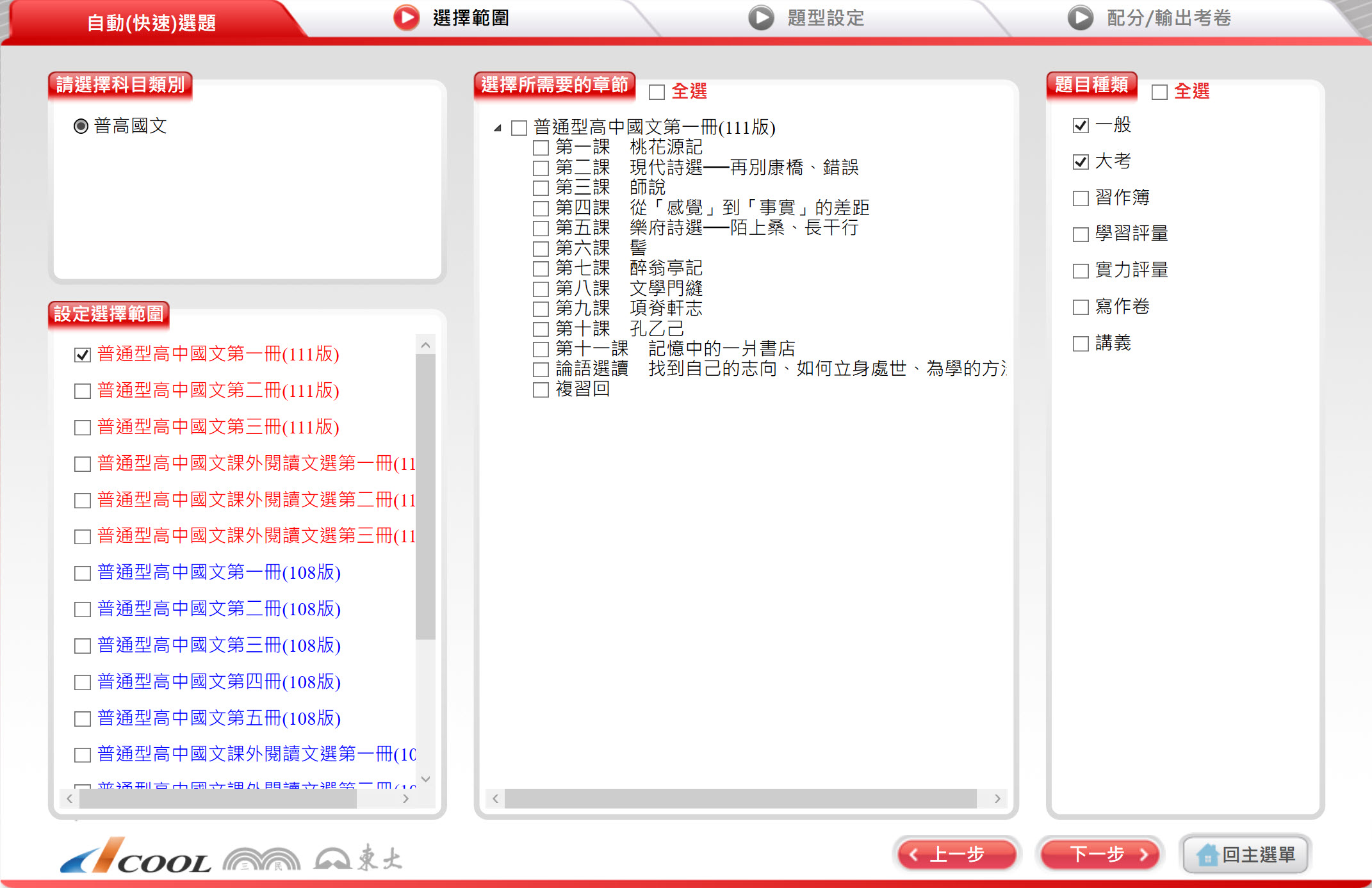112學年上學期 高中命題光碟 三民版 國文科(一、二、三、四、五、課外閱讀選文選)(108課綱) 題庫光碟