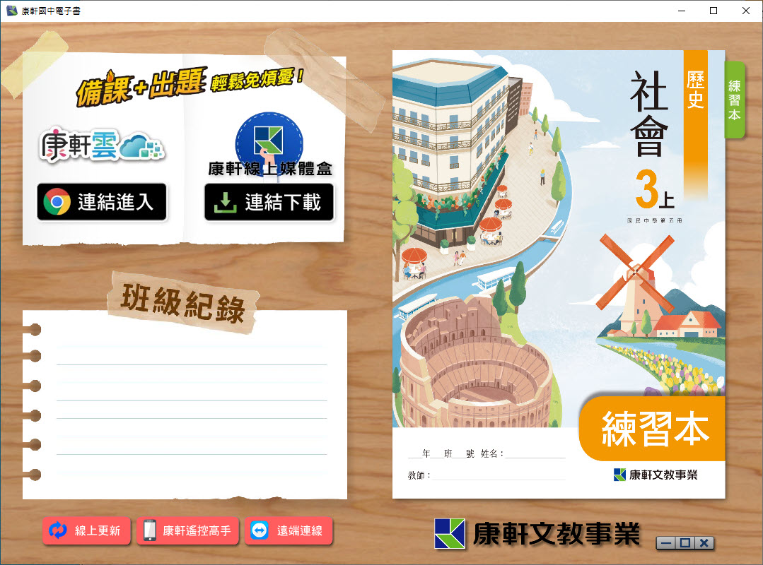 112學年上學期 國中 康軒版 歷史 練習本電子書 3年級 教學光碟