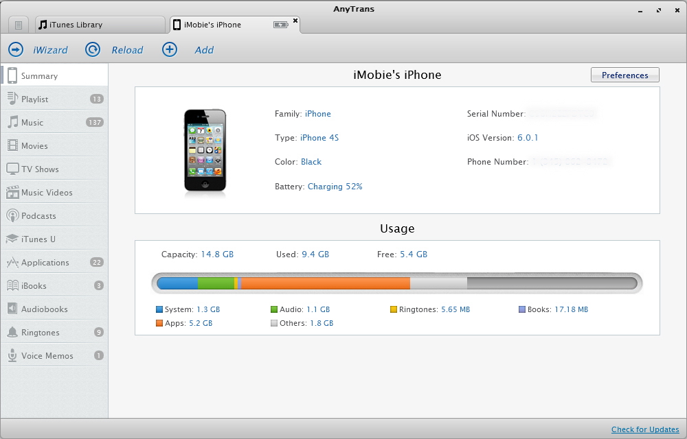 • iMobie AnyTrans v1.7 英文正式版(設備傳輸軟體)