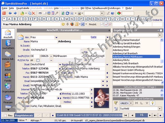Komfortable Adressen-, Dokument-,Termin- und Auftragsverwaltung (Kalender,SQL-Editor,