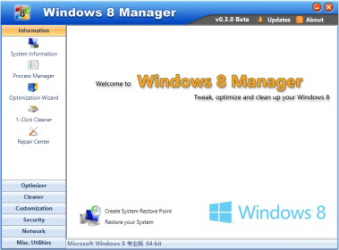 expectations.Windows 8 Manager是一個系統工具,可以幫助你優化,調整,修復和