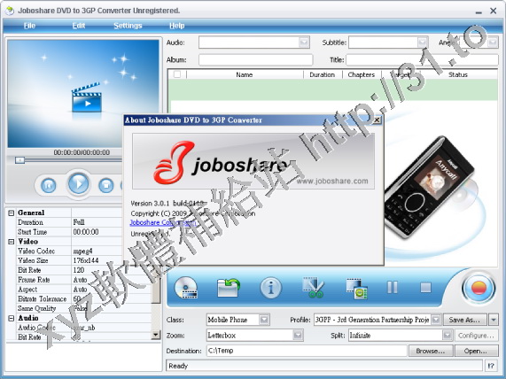 Joboshare DVD to 3GP Converter v3.0.1.0110 英文正式版(音視頻轉換軟體)